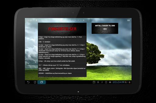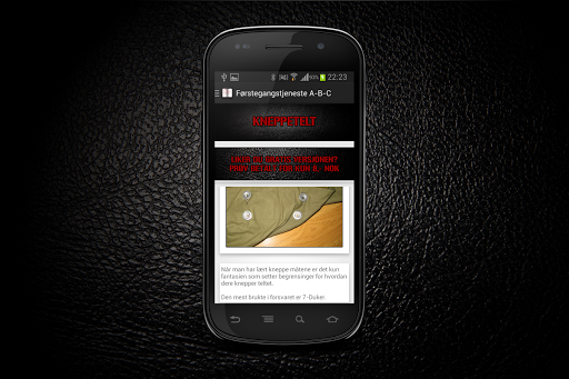 The app is designed to deliver everything you will need, during the first meeting with the Norwegian Army Service. As you enter, there is much new to be learned, everything from buttoning of tents, polishing shoes and weapons, war techniques to extended First Aid Course.