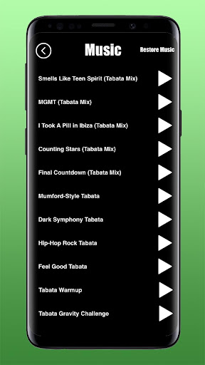 Questa app fornisce un accesso completo al catalogo musicale dei tabata in continua espansione. Ogni canzone in-app è sincronizzata in un timer di allenamento di Visual Tabata per tenerti in pista. Semplice da usare.