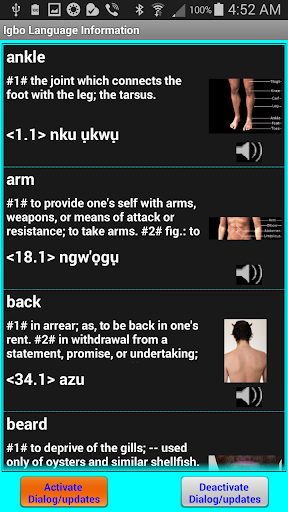 L'applicazione utilizza anche inglese frase traduzioni per garantire la corretta comprensione della lingua Igbo.