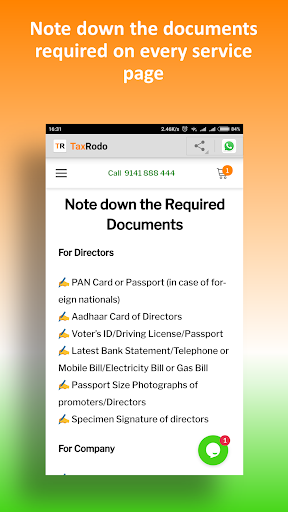 Taxdodo aiuta le aziende di registrazione, contabilità, deposito dei rendimenti. In breve taxodo è l'unica app per tutte le tue soluzioni aziendali. Basta catturare di foto dei tuoi documenti sul tuo cellulare e condividi con noi, il nostro rappresentante farà il resto. Puoi condividere i documenti via email e quale app. Ottieni l'elenco completo dei documenti richiesti per le prestazioni dei servizi.