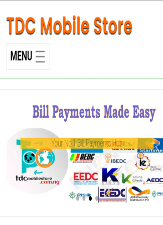 TDCmobile è un'app di pagamento di fatture attraverso la quale è possibile effettuare un comodo pagamento per i servizi quotidiani come il telefono Airtime Recharge e la sottoscrizione di Bundle Data Internet (Mtn, Airtel, Etisalat, Glo);Abbonamento TV via cavo come DTSV, GOTV, Startimes;Bill elettrici (PHCN) - Ikeja Electric (IKEDC), Abuja Electric (AEDC), Port-Harcourt Electric (PHED), EKO ELECTRIC (EKEDC), JOS ELECTRIC (JEDC), KANO ELECTRIC (KEDCO), Pagamenti educativi (WAEC);Trasferimento dei fondi, Biblioteca e Molti altri servizi.