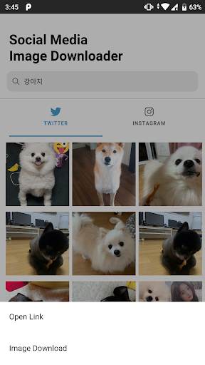 Image Downloader는 트위터와 인스타그램에서 태그를 기반으로 검색된 사진들을 휴대폰 앨범에 저장할 수 있는 어플리케이션입니다. ---- 개발자 연락처 : 821800-6871
