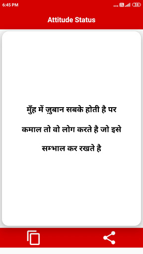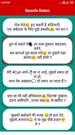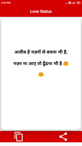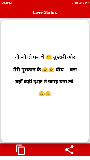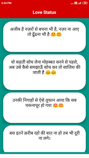 इस App में आपको Latest Status in Hindi मिल जाएंगे जिनको आप Whatsapp या और किसी भी सोशल मीडिया प्लेटफॉर्म्स पर शेयर कर सकते है