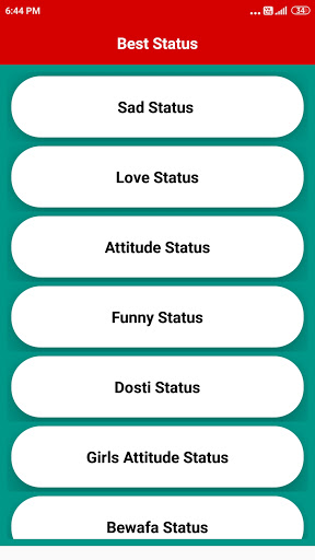 इस App में हमने बहुत सारी Categories को शामिल किया है जैसे के Love Status in Hindi,Sad Status in Hindi, Attitude Status in Hindi for Bouys and Girls etc. अगले Update में और भी ज़्यादा Categories शामिल की जाएंगी।