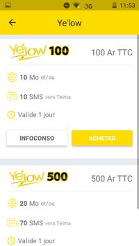Grâce l’onglet Mes Offres, l’application vous permet d’accéder au détail complet des offres prépayées Ye’Low, M’ora, First et Telma Net !