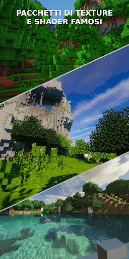 Texture Packs per Minecraft PE è un'applicazione che ti consente di trovare qualsiasi trama in base ai tuoi criteri e installarla automaticamente nel gioco. L'app mostra solo i pacchetti di texture più popolari e più recenti. Abbiamo selezionato i migliori shader e texture con un gran numero di combinazioni.