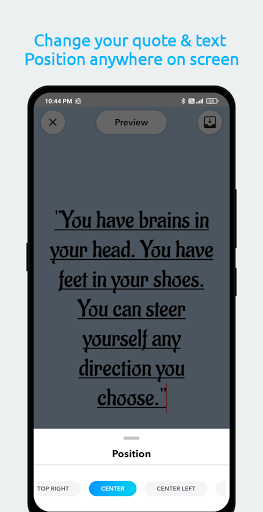 Quote Maker Funziona meglio come Text Wallpaper Creator con scrittura personalizzata su foto. Crea la tua carta da parati e salva lo sfondo nella galleria per condividere con gli altri.