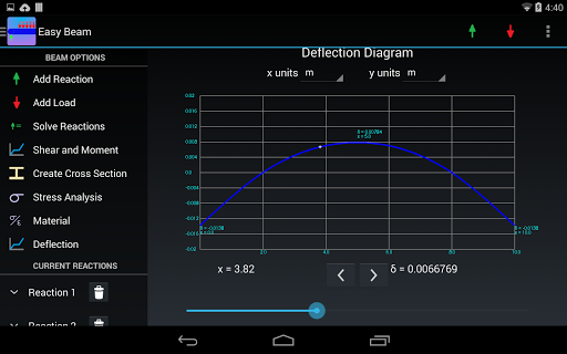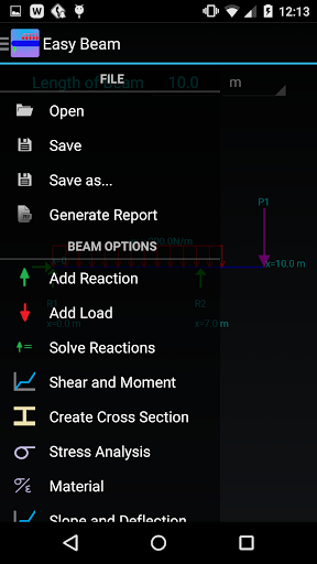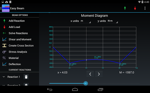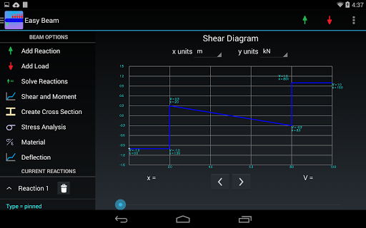 Easy Beam allows you to easily and swiftly calculate reaction forces, shear force and bending moment, slope, deflection and stress diagrams for beam analysis.