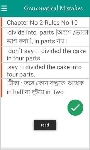 Sometimes we make mistakes during using these rules and that's why this app identifies some common grammatical mistakes and shows how to correctly use these rules.