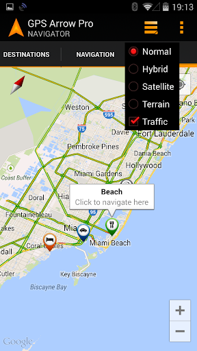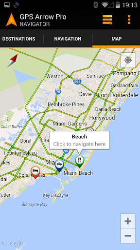 GPS Arrow Navigator ti mostra la direzione che devi andare, così come il tuo attuale cuscinetto , velocità e distanza dalla destinazione selezionata.