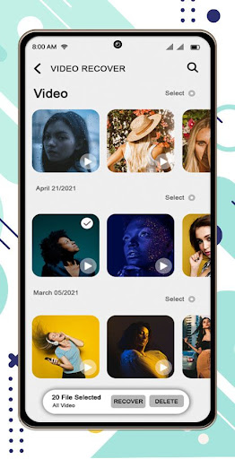 To restore deleted files, select the deleted photos or deleted videos you want to recover and tap on the 'recover' button. Just one single click, All the deleted files you seleted will be restored to local folder.