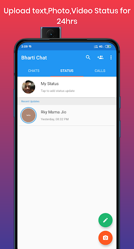 Bharti chat è una chat Android, la videochiamata, le chiamate vocali e le chiamate vocali e l'app di condivisione dei media attraverso i quali gli utenti possono chattare l'un l'altro e comunicare tra loro.