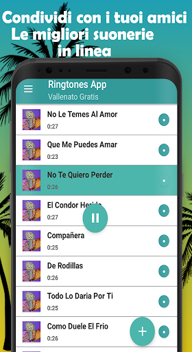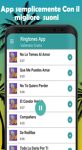 nuovo interpretato da: La decisione Vallenata, Silvestre Dangond, Peter Manjarres, Jorge Celedon, Nelson Velasquez, Kaleth Morales, Felipe Pelaez, Alfredo Gutierrez, Patricia Teheran, Martin Elias, Diomede Diaz, Rafael Orozco, Los Inquietos, Binomio de Oro De America, I piccoli diavoli, Giganti di Vallenato, Miguel Morales, Luis Mateus, I Chiches del Vallenato, Farid Ortiz, Gli Ambasciatori, Daniel Celedon, Embrujo Vallenato, ecc. Vallenatos è libero di scaricare tutte le suonerie con i migliori vallenatos con questa App è semplicemente facile da usare, goditi le suonerie ritmiche preferite vallenato per le chiamate vallenato per impostare l'allarme con la musica vallenato da scaricare è la tua scelta che ti rende sastifecho stabilire il suono del messaggio con suonerie per i vallenatos gratuiti se ti piacciono i brani vallenatos per la condivisione gratuita è ora un'app gratuita e seleziona le suonerie di musica vallenato.