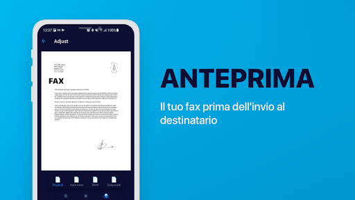 App fax facile da usare, veloce e sicura per quando sei in movimento. Importa o scansiona documenti, fatture, ricevute o note e inviale in tutto il mondo in pochi tocchi. Lo scanner avanzato integrato trasformerà tutti i tuoi file in documenti pronti per il fax.