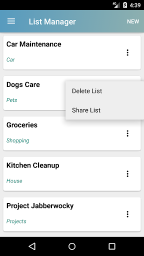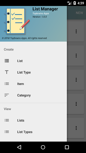 Poiché puoi avere più liste per consentiremo anche di classificare i tuoi elenchi per tipo. Ad esempio, potresti avere diverse liste della spesa e fare elenchi. Questa app fornisce alcuni elenchi di esempio, che possono essere configurati o puoi creare la tua lista. Quando si crea un elenco è possibile classificarlo per tipo. L'app fornisce un elenco di classificazioni da cui puoi scegliere, oppure è possibile creare il tuo tipo di elenco. Se non si desidera assegnare un tipo di classificazione, l'elenco utilizzerà la classificazione "ALTRO" come predefinita.