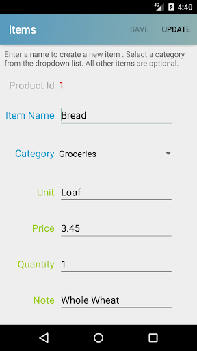 Un processo di classificazione simile verrà utilizzato quando si crea un nuovo oggetto . È possibile classificare gli articoli per categorie, per i quali questa app include alcuni campioni, ma è possibile creare anche il tuo. Le categorie possono essere cibo, software, musica, hardware, articoli da giardino, ecc. Se non si desidera assegnare una categoria, l'elemento utilizzerà la categoria "Altro" come predefinito.