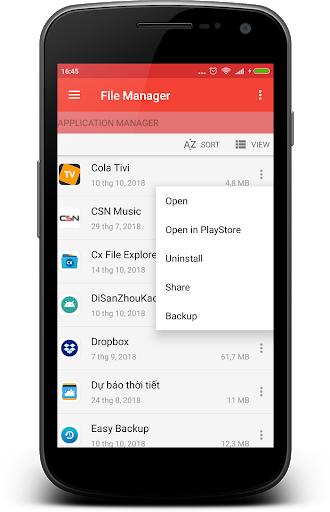 - Application Manager: manage all application in your phone, you can backup, uninstall, open store, ...