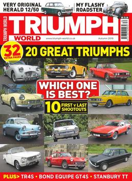 Triumph World is the leading magazine dedicated to all standard triumph cars. Read about some of the greatest triumphs on the road, from the TR sports through to the Stag, Spitfire and Saloons, includes practical features, and also buying and maintenance advice.