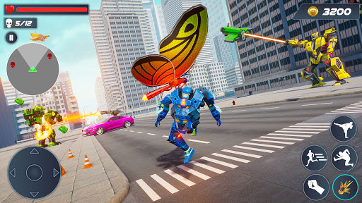 Play this butterfly robot car game: robot transforming games with the blend of war robot games and robot car games. You have played and experienced a lot of war robot car transform games with robot car simulator and car robot simulator ideas but this robot butterfly simulator is going to be the most exciting snd adventurous robot action gameplay on the play store. Robot transforming games coming with animal robots and war robots features are going popular in the robot games lovers, so trick tale studio presents the best robot shooting games on the play store as butterfly robot fighting games for you to play and experience the newest robot action games fun. Play against the robot mafia and alien robots to defend the city people and buildings. In this century robot war has commenced in the country, aliens robots attacking city buildings and killing civilians. US police and the army are not adequate for battling against the robot mafia, so this is your duty as a butterfly robot car simulator to transform into a robot car and a butterfly robot to fight against the robot enemies.