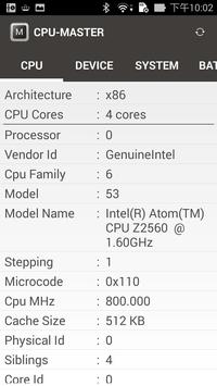 CPU MASTER is a free application that reports information about your device.