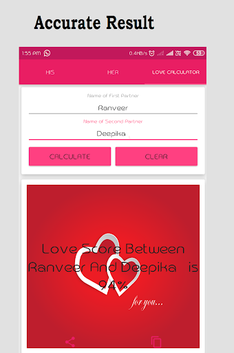 The Love Calculator can enable you calculate the probability of a successful relationship between two people.