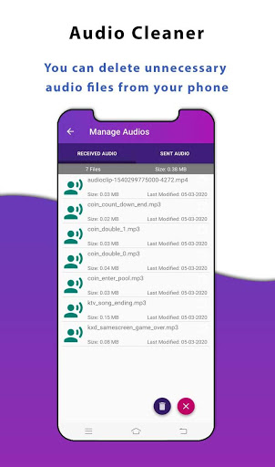Con questa app puoi eliminare facilmente i file indesiderati, anche puoi eliminare tutti i file Junk Whatsapp contemporaneamente con un clic e aiutarti a ottenere più spazio libero sul tuo dispositivo !!!
