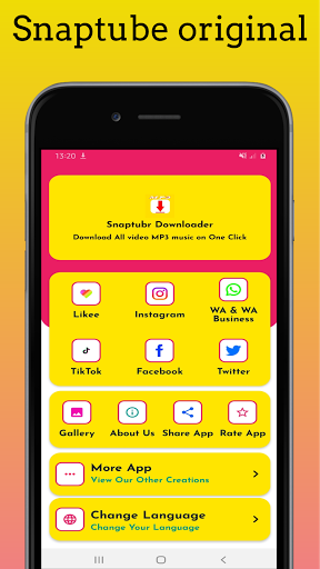 L'app di downloader di Snaptubè HD HD ha una grande funzionalità per l'app GRATUITA HD Video Downloader che è la migliore app Social Media Video Downloader. Snaptubè ha anche la capacità di download ad alta velocità Video Snaptubè originale الاصلي الاصفر القديم.