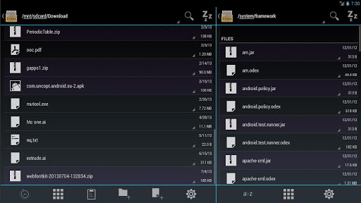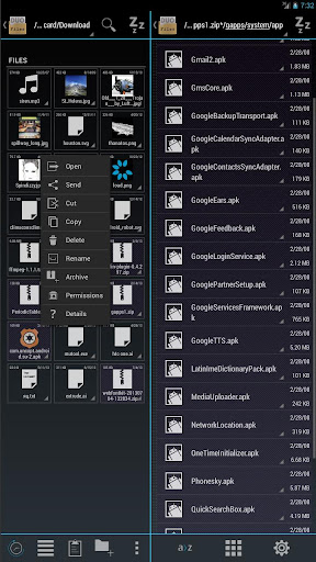Il primo è che abbiamo sviluppato un'API nativa (in c) per interrogare il filesystem. Ciò ci ha permesso di utilizzare la stessa API altamente ottimizzata per accedere ai file sulle aree di stoccaggio accessibili all'utente (come la SDCard) o sulle partizioni di sola radice. Abbiamo esteso tale API per consentire all'accesso al contenuto di archivio come se fossero semplici directory sul filesystem, compresi gli archivi nidificati.