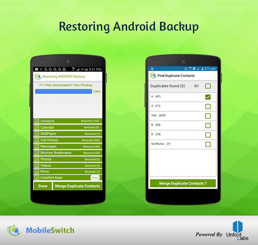 .With the help of MobileSwitch you can transfer Contacts, Calendar events etc. from old device to a new device with just single tap. Our Software solution provides a safe way to upload, store or download your data to a new phone.