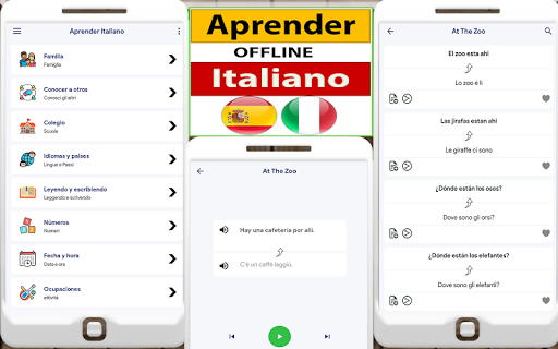 imparare l'italiano è gratuito per tutti gli utenti. Puoi imparare frasi e frasi complesse in pochissimo tempo. italiano Aprender app è utile per gli uomini d'affari e i viaggiatori per imparare le basi della lingua straniera. Gli utenti possono imparare l'italiano in modo semplice e ottimale, sia per principianti che per principianti. italiano grammatical è anche utile per imparare i verbi e il vocabolario. Funziona in modo efficiente sia online che offline.