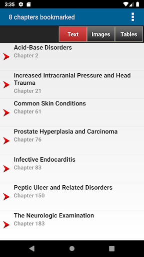 Questa app è molto intuitiva e facile da navigare, permettendoti di navigare nei contenuti o cercare argomenti. Il potente strumento di ricerca ti dà suggerimenti di parole che appaiono nel testo come digiti, quindi è un fulmine veloce e aiuta a ortografia quei lunghi termini medici. Lo strumento di ricerca mantiene anche una storia recente dei termini di ricerca passati in modo da poter tornare a un risultato di ricerca precedente. Hai la possibilità di creare note e segnalibri separatamente per testo, immagini e tabelle per migliorare il tuo apprendimento. È inoltre possibile modificare le dimensioni del testo per una lettura più semplice.