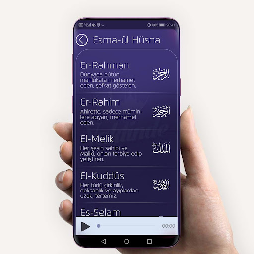 • Puoi vedere il nome 99 e la descrizione di Allah C.C. con Esma-ul Hüsna. Puoi ascoltare una voce.