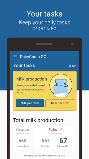 Con DairyComp Go You puoi gestire, tracciare ed eseguire tutti i compiti relativi alla produzione, alla riproduzione e alla salute degli animali in tempo;mantenere tutte le informazioni in un unico posto.