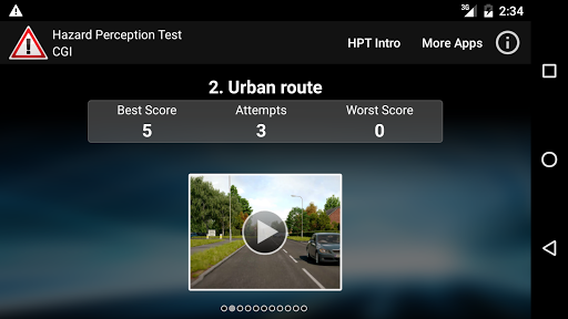 Questa applicazione riproduce l'esperienza del vero test. Identifica il rischio corretto toccando lo schermo sul dispositivo. Prima che identifichi il pericolo più secco. Il punteggio va da cinque a zero punti. Quando si completa una clip puoi riprodurlo in modalità revisione per vedere esattamente quando il pericolo inizia e finisce.
