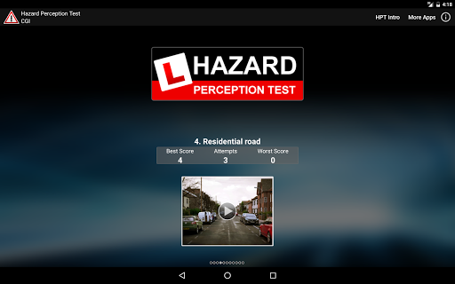 (HPT) è la seconda parte del test della teoria della guida. Pratica il tuo test di percezione dei pericoli con clip con licenza dall'agenzia degli standard autista e dei veicoli (DVSA), le persone che fissano il test. L'applicazione include clip per testare il tuo tempo di reazione.