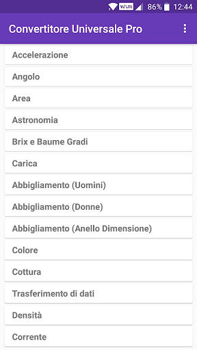 Convertitore Universale Pro è un calcolatore di conversione che può rapidamente e facilmente convertire unità di misura diverse. Si compone di 62 categorie, con 1323 unità e 54494 conversioni. Valori e risultati calcolati possono essere condivisi con social media, posta, messaggi e altre app di condivisione.