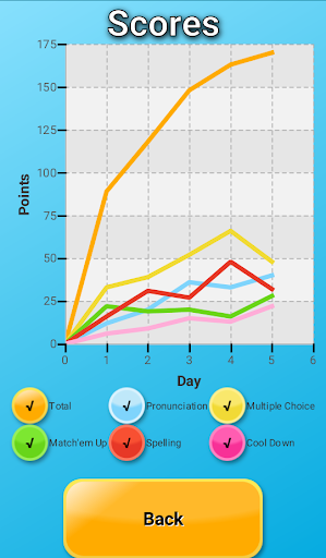 • Cool Down is the last step before completely memorizing the word, as it requires you to use your listening skills to find the correct translation