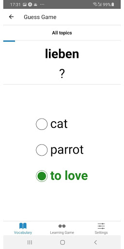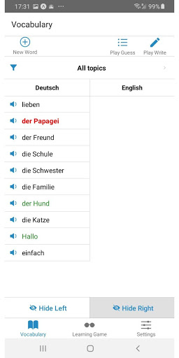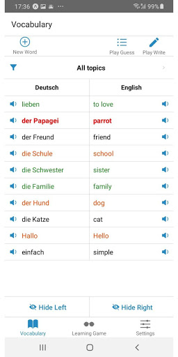 ☆ Play learning games (voice, guess and writing) to memorise new words fast and improve your knowledge