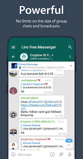 Affidabile: Costruito per consegnare i tuoi messaggi nel byte minimo possibile, Lino è il sistema di messaggistica più affidabile mai effettuato. Funziona anche sulle connessioni mobili più deboli.