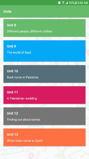 - Save the words of each unit by linking the image with the word in English with the translation of the Arabic with its correct pronunciation. The sound button can be pressed to repeat hearing the word for more than once. Listening is one of the best language learning skills.