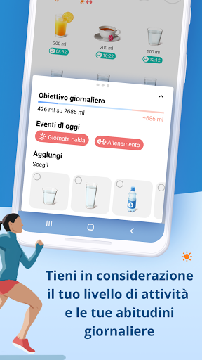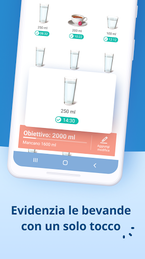 Evidenzia le bevande con un semplice tocco e tieni agevolmente traccia dei tuoi progressi e della tua idratazione corporea.