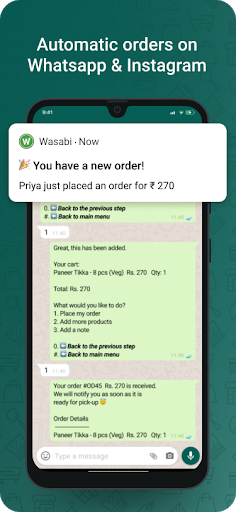 I clienti ordinano di più se ricevono una risposta rapida su WhatsApp. Con l'app Wasabi, non perdere mai un ordine o una prenotazione.