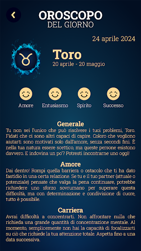 Astrologia Oroscopo e Tarocchi Carte ti sembra divertente? È tempo di cercare le risposte alle tue domande su salute, amici, famiglia e relazioni con l'aiuto di oroscopo personalizzato e numerologia completa gratis. L' oroscopo del giorno e il calcolatore di compatibilità segni zodiacali dell'amore sono anche lì per predire il tuo futuro. Apri la tua mente ai gioco dei tarocchi SI o NO e ottieni successo nel controllare la tua vita. Approfondiranno la tua comprensione dell'amore, i problemi che stai affrontando e cartomanzia tarocchi italiani gratis. Tutto questo e molto altro ti aspettano nella nostra App Astrologia Oroscopo e Tarocchi Carte, che include Arcani Maggiori e Minori.