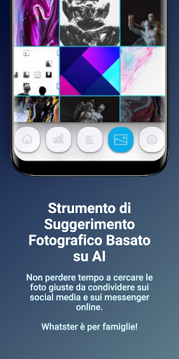 Non perdere tempo a cercare foto da condividere! Sappiamo che richiede molto tempo e uccide la produttività alla ricerca di foto da condividere sui social network. Whatster ha una funzione di suggerimento di foto basata su ia da condividere sullo stato Whatsapp dell'utente o su altri social network come Instagram, Facebook o Twitter.