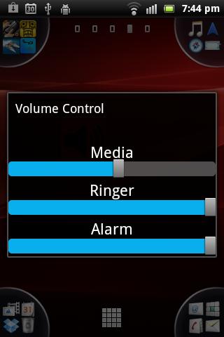 A widget that opens a menu for changing volume levels on your phone: music, ringer and alarm.