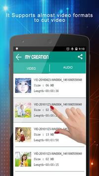 Wanna cut or trim any video file?This video trimmer is best video editor for Video trimming,cutting and Video Editing.You can also share your videos with your friends directly through the app.Trim song using Video Editor.Supports all standard video formats including AVI, MOV, WMV, VOB, MP4, FLV, 3GP, FLV and many more.