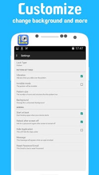 of Pattern Lock and Password Lock. You can lock each application separately.