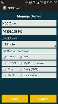 meaning it will not drain neither your battery nor your bandwidth, as your servers are being monitored at the host level by NOC Zone servers and not on your mobile. Your phone is just our target when it's the time to alert you about any connectivity issues related to services running on any of your servers.
