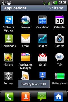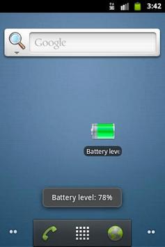 Battery level is a small app that, when run, will quickly display a toast notification containing the same information you could find navigating through Menu, Settings, About phone, Status, Battery level.