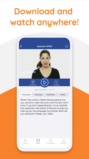 Impara una lingua straniera con contenuti video autentici! YaBLA è una libreria video per gli studenti linguistici con giochi e strumenti personalizzati per aiutarti a diventare fluente. YaBLA supporta gli studenti spagnoli, francesi, italiani, tedeschi, ESL e cinesi. Yabla offre 6 lingue tra cui scegliere!